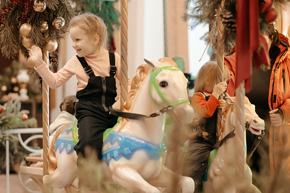 Маленькие гости каждый день с 12:00 до 20:00 смогут покататься на рождественской карусели.