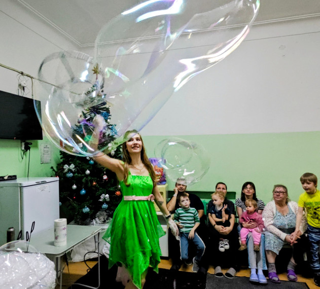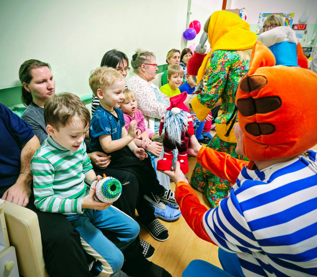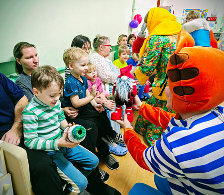 Также маленьким пациентам, длительное время проходящим лечение устроили праздник. В гости к детям пришли Дед Мороз, Снегурочка и другие сказочные персонажи. Малышей вовлекли в участие в веселых играх и танцах, им подарили впечатления от шоу мыльных пузырей и огненных фокусов.