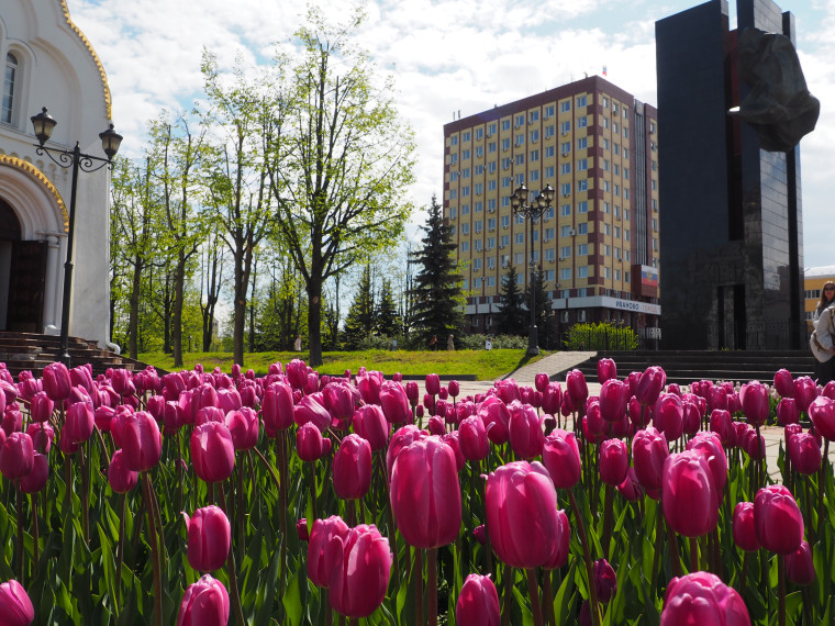 На городских клумбах распускаются тюльпаны – было высажено в свое время 60 луковиц. Город украшают десть сортов тюльпанов разной окраски – от белой и светло-сиреневой до темно-фиолетовой. Распускаются сорта с махровыми и бахромчатыми цветками.