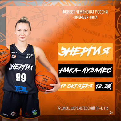 17 октября ивановские спортсменки из клуба «Энергия» встретятся с соперницами баскетбольной команды «Ника-Лузалес». Игра пройдет в Ивановском Дворце игровых видов спорта в рамках ФОНБЕТ Премьер-лиги. Матч с клубом из Сыктывкара начнется в 18:30.