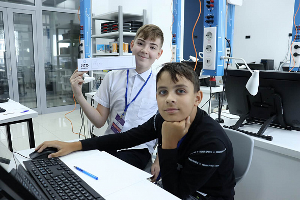 В сфере «Технологии и искусственный интеллект» отличились пять школьников. Команда «Лампочки» (Владислав Фокин, Виктория Коровкина, Варвара Тарасовская) победила, а «Нейроны» (Тимофей Кручинин, Илья Смирнов) стали призерами.