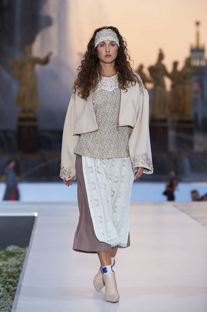 От компании «Шуйские птицы» зрители увидели две коллекции («Шуйская птица», созданная совместно с брендом «Novikova Dsgn», и «Переосмысление» под брендом «ШС», подготовленная совместно с Институтом искусств РГУ им. А.Н. Косыгина).
