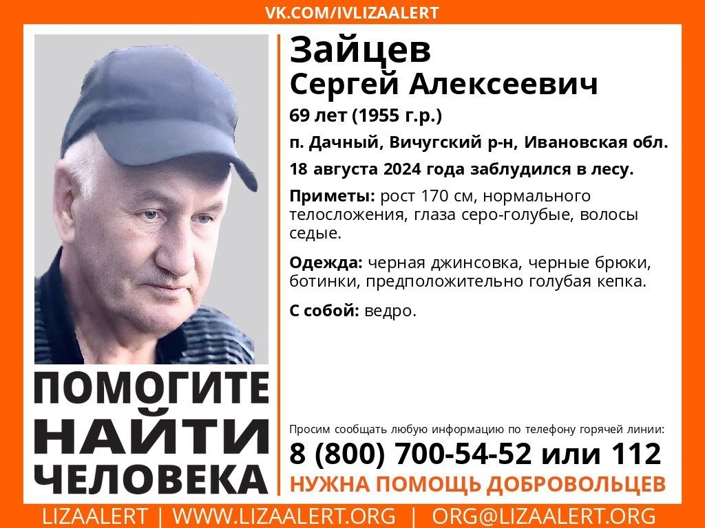 С 18 августа в лесу блуждает 69-летний житель Вичугского района Сергей Алексеевич Зайцев.