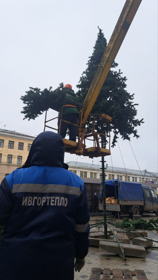 Сегодня, 3 декабря, сотрудники АО «Ивгортеплоэнерго» установили одну из главных новогодних елей города на площади Ленина в Иванове.