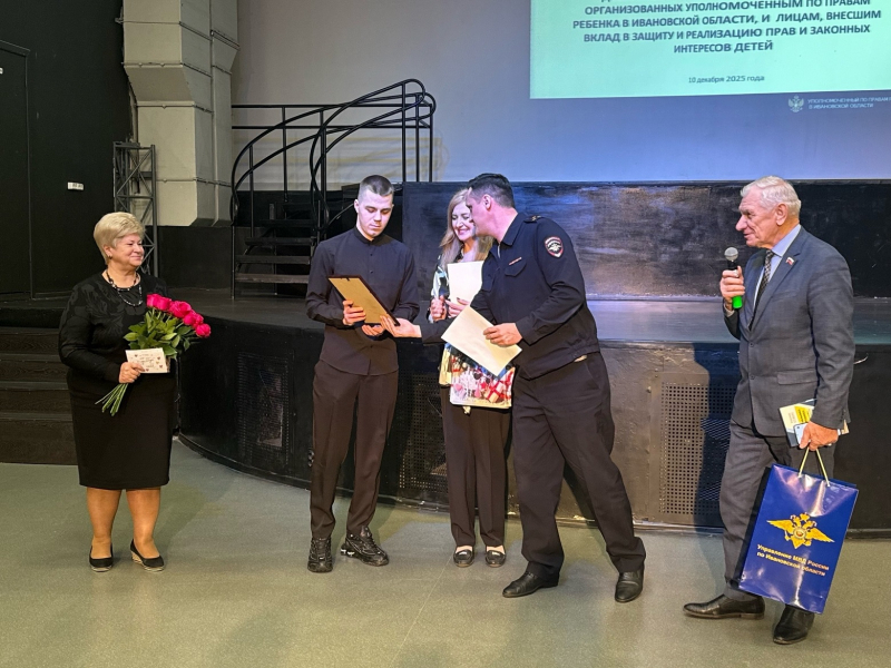 «Начальник ООД УУП и ПДН УМВД России по Ивановской области полковник полиции Александр Папилов от имени руководства Управления вручил Алексею Благодарственное письмо, пожелал успехов, отметив, что его поступок - это пример мужества и решительности. Председатель ветеранской организации УМВД Николай Скляров присоединился к словам благодарности, поблагодарил юношу за активную гражданскую позицию и вручил памятный подарок. К поздравлениям также присоединились Уполномоченный по правам ребенка в Ивановской области Светлана Протасевич», - добавляют правоохранители.
