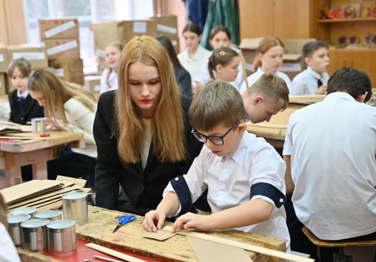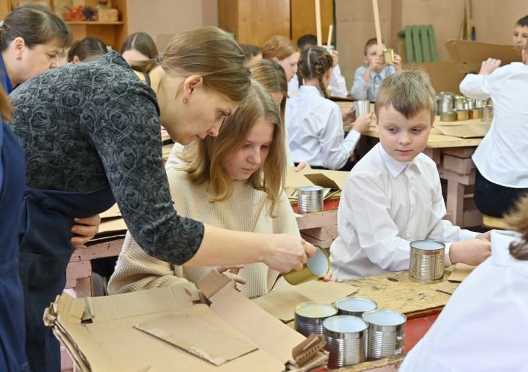 Директор школы Наталья Орехова рассказала, что 11 ноября учащиеся 3-го «б», 5-го «а», 6-го «в», 7-го «в», 9-го «а», 10-го «а» и 11-го «а» классов вместе с педагогами и родителями приняли активное участие в процессе изготовления окопных свечей для наших земляков, находящихся в зоне проведения СВО.
