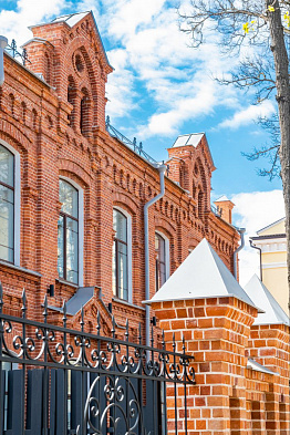 - восстановлены исторические фасады, характерных для разных периодов постройки (известковая штукатурка богадельни, краснокирпичная кладка больницы и стилистика советской встройки),