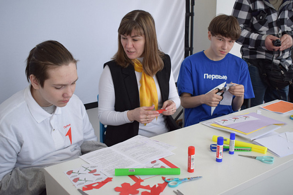 Сегодня, 19 февраля в новом пространстве для работы Советов Первых и молодежи, обустроенном в Ивановском центре социальных компетенций «Притяжение», проведен мастер-класс по изготовлению открытки ко Дню защитника Отечества.
