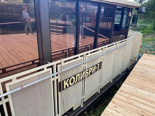 Для удобства пассажиров, рядом с новым пирсом на набережной у Дворца водных видов спорта специально построили причал. Именно оттуда отправляется трамвайчик. Сейчас маршрут "Колибри" ограничен участком реки между Соковским и Самойловским мостами, но, как сообщил капитан, в будущем планируется его расширение.