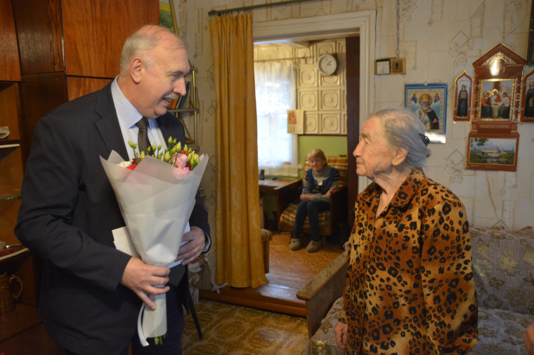 В Иванове отметили вековой юбилей Зинаиды Тарасовой, труженицы тыла. Владимир Пигута, представитель городской администрации, поздравил её, вручив цветы, подарки от мэрии и приветственное письмо от президента.