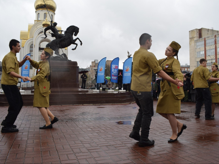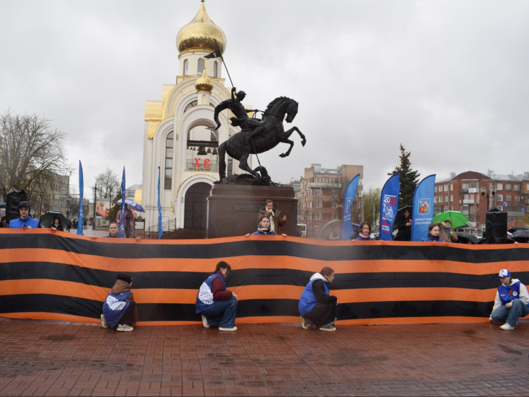В ходе акции, как рассказывают в мэрии Иванова, солисты вокально-эстрадной студии «А+Б» городского Центра культуры и отдыха исполнили патриотические песни о нашей Родине. А в завершении акции волонтеры развернули десятиметровое полотно в цветах георгиевской ленты, а затем вручили всем желающим оранжево-черные ленточки и памятки о правильном использовании (ношении) символа Победы.