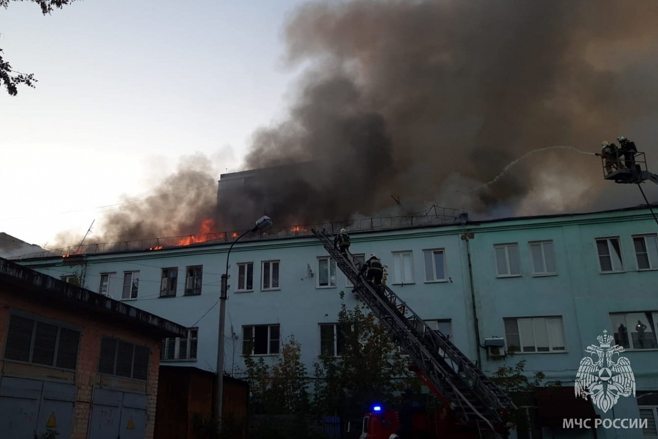 В результате пожара повреждена кровля многоквартирного дома на площади 650 кв.м. с частичным обрушением.