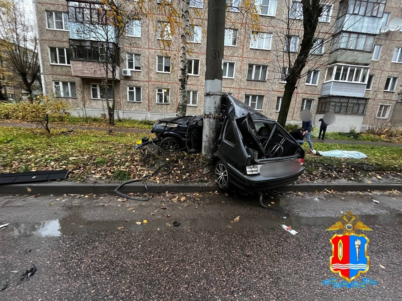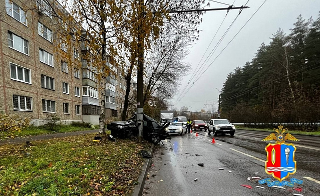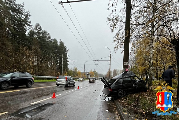 Транспортное средство в результате аварии «намотало» на столб.