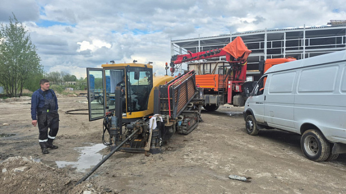 В понедельник, 19 мая, к работам приступила специализированная техника. Первый этап ликвидации подтоплений - работа установки для горизонтального направленного бурения.