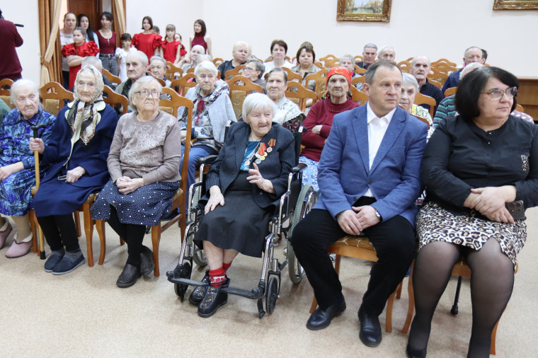 Праздничный концерт, посвященный 80-летию Победы в Великой Отечественной войне и Году защитника Отечества, прошел 20 марта в Доме-интернате для ветеранов войны и труда «Лесное». Поздравить ветеранов пришли юные артисты хореографического коллектива «Крылья» и вокальной студии «Дорогою добра». В ходе мероприятия юбилейными медалями были награждены пятеро жителей Дома-интерната «Лесное». Вручил памятные медали и сказал теплые слова в адрес ветеранов глава областного центра Александр Шаботинский.