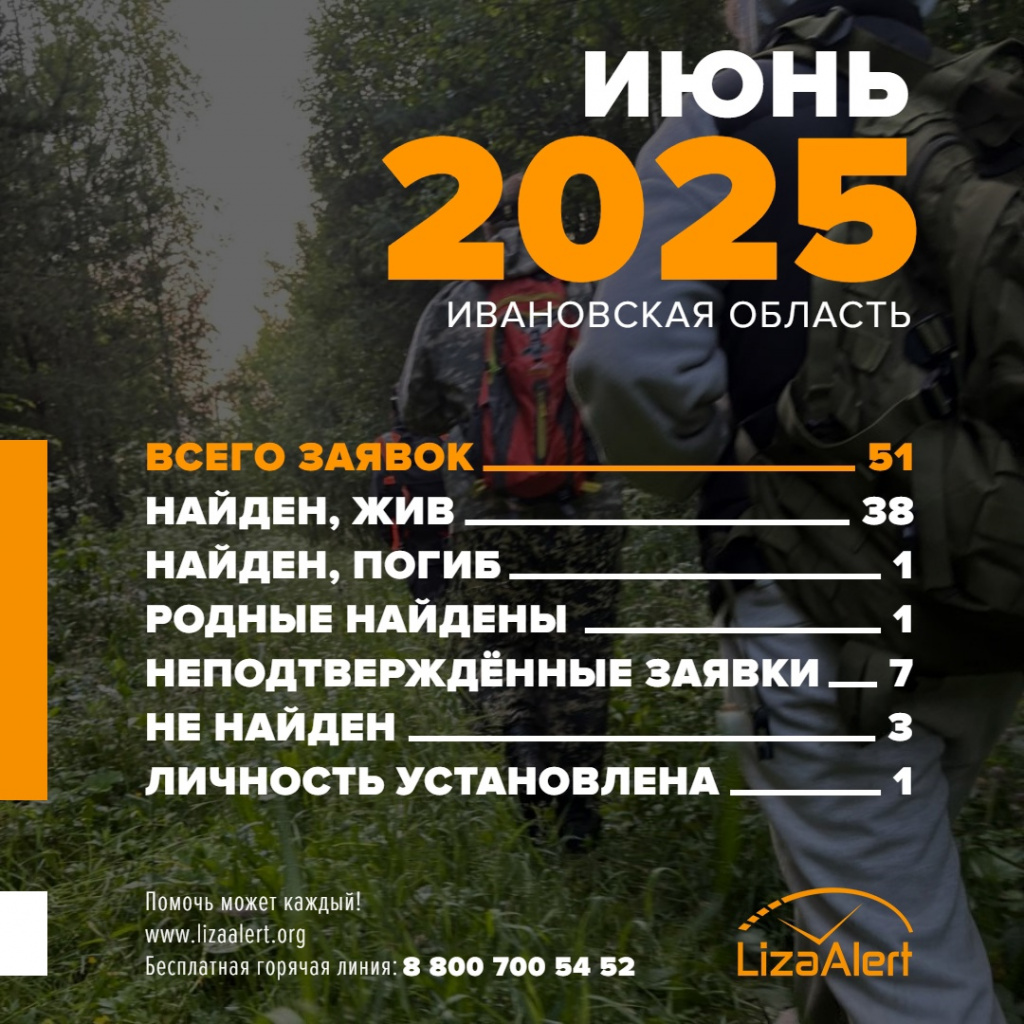 В ивановском ПО «ЛизаАлерт» опубликовали статистику поиска в июне: