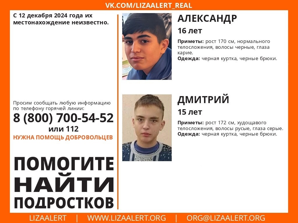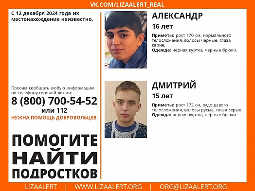 С 12 декабря нет информации о том, где находятся 16-летний Александр и 15-летний Дмитрий из села Чернцы Лежневского района.