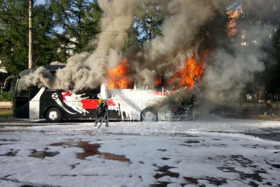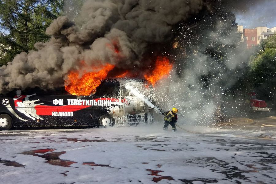 Во Владимире загорелся автобус, перевозивший ивановскую детскую футбольную команду (ФОТО)