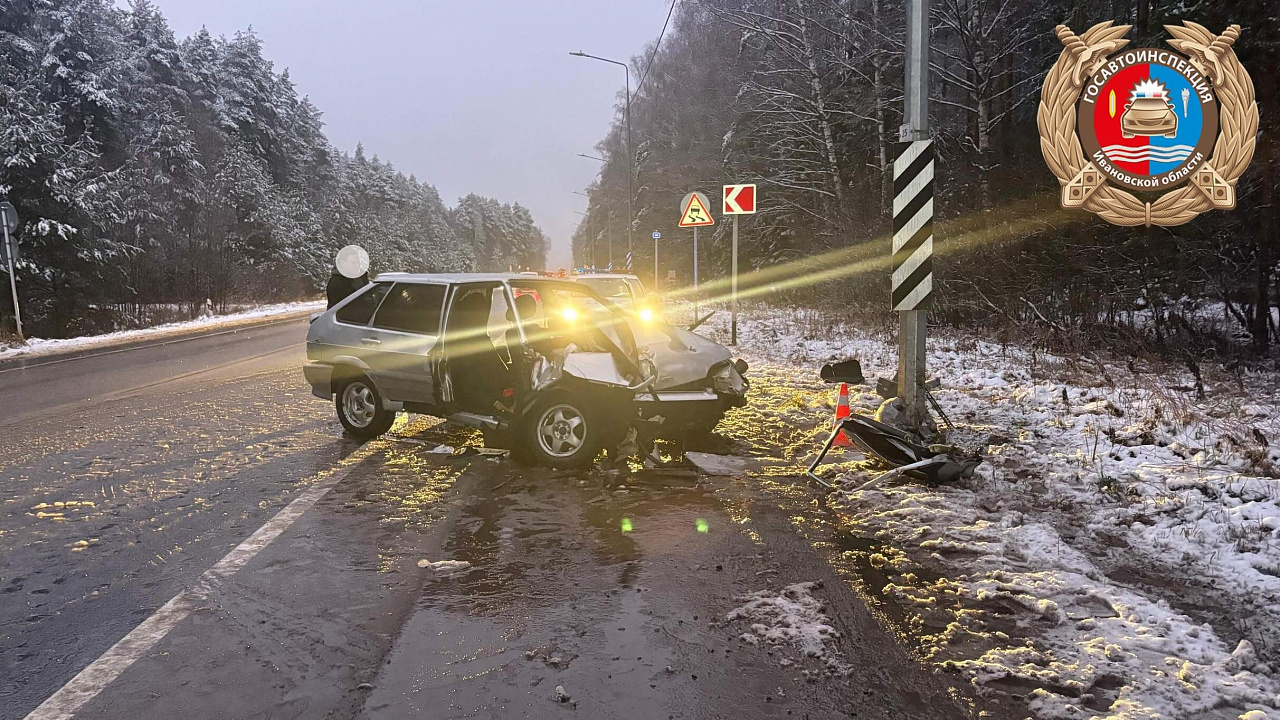 В Тейковском районе, в 04:15, на 103-м километре трассы "Ростов - Иваново - Нижний Новгород" 22-летний водитель "ВАЗ 21140" также не справился с управлением, врезавшись в столб, расположенный справа по направлению движения. В результате аварии пострадали и водитель (ушибы тела, госпитализирован), и 20-летняя пассажирка (телесные повреждения, госпитализирована). Возбуждено дело по статье 12.24 КоАП РФ. Водитель привлечен к ответственности по статьям 12.8 ч.3 (алкогольное опьянение, 0,570 мг/л), 12.33, 12.5 ч.1, 12.3 ч.1, 12.37 ч.2 КоАП РФ.