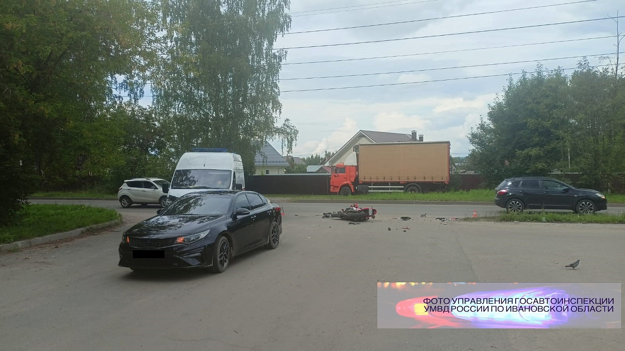 В городе Кинешма, в половине второго дня, на улице Маршала Василевского, водитель мотоцикла «Хонда», мужчина 38 лет, при попытке обогнать попутное транспортное средство, столкнулся с автомобилем «Киа Оптима», которым управлял 45-летний водитель. «Киа Оптима» совершала поворот налево. В результате инцидента мотоциклисту была оказана медицинская помощь на месте прибывшими сотрудниками скорой помощи, госпитализация не потребовалась. В отношении него были составлены протоколы об административных правонарушениях по статьям 12.15 ч.4 (Нарушение ПДД, повлекшее выезд на встречную полосу), 12.8 ч.3 (Управление ТС в состоянии опьянения лицом, не имеющим или лишенным водительских прав) и 12.7 ч.2 (Управление ТС лицом, лишенным водительских прав) Кодекса об административных правонарушениях РФ.