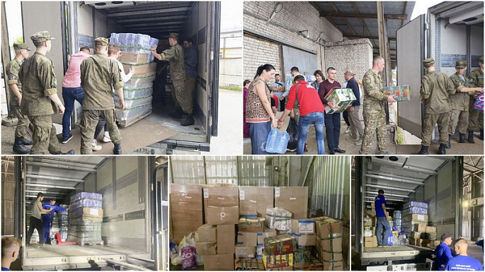 Сбор гуманитарной помощи организовал благотворительный фонд поддержки военнослужащих и их семей «Своих не бросаем». «Общими усилиями мы сумели собрать все необходимое на тысячу человек, 20 тонн гуманитарной помощи. Здесь продуктовые наборы, вода, средства для реабилитации, которые сегодня необходимы жителям, средства гигиены, игрушки для детей. Эту работу мы продолжим: есть запрос на поставку генераторов, строительные материалы», - сообщил исполнительный директор фонда «Своих не бросаем» Мария Недобежкина.